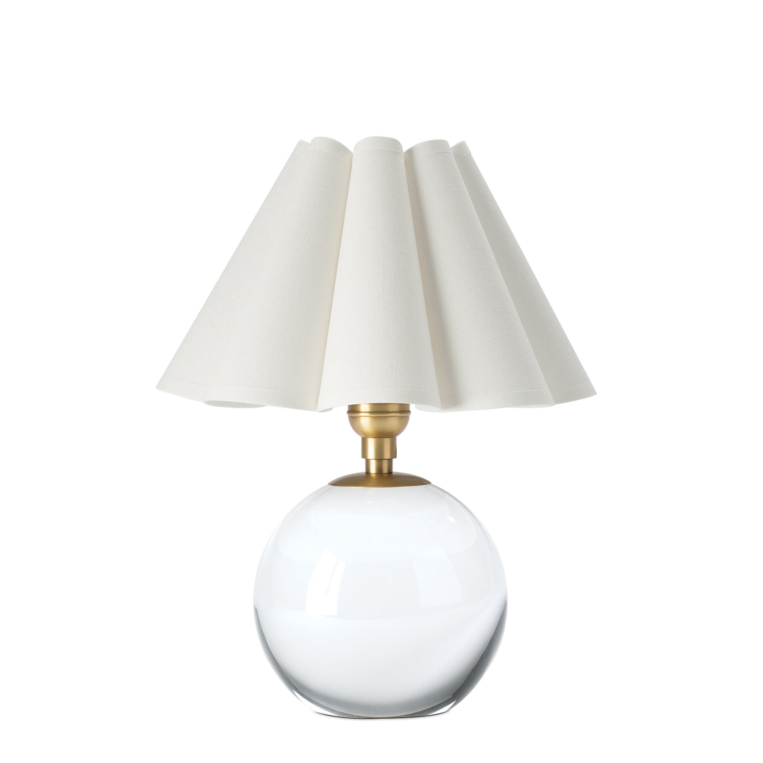Giorgio Crystal Mini Lamp - Natural Brass with Green Scalloped Shade is backordered and will ship as soon as it is back in stock.