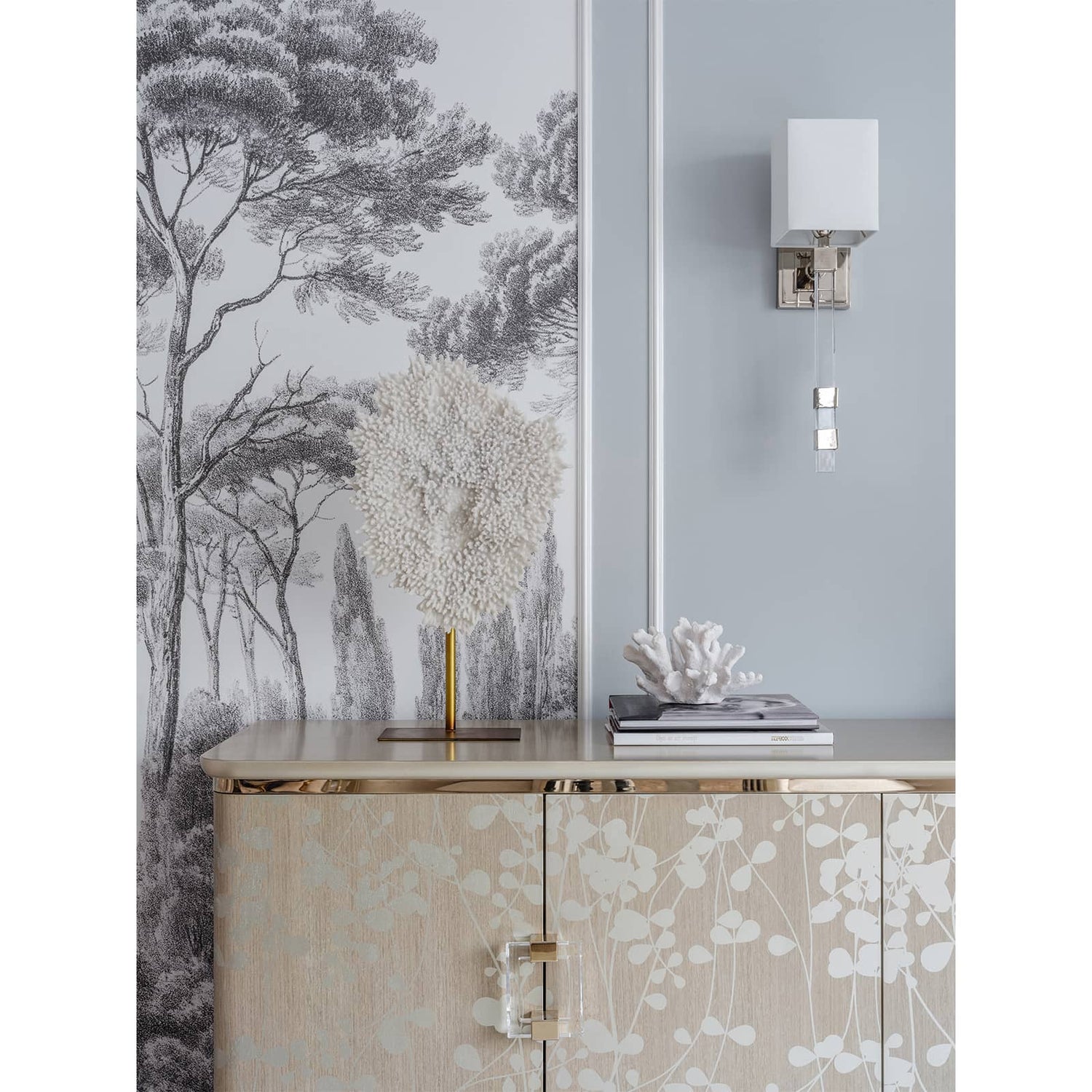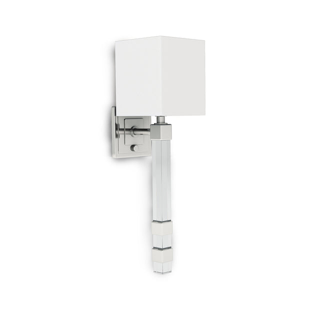 Making an immediate impression on any living space, the Metro Sconce showcases a style that is both bold and modern. Cut crystal and finished steel are perfectly matched with a boxy linen shade for a clean, crisp look.