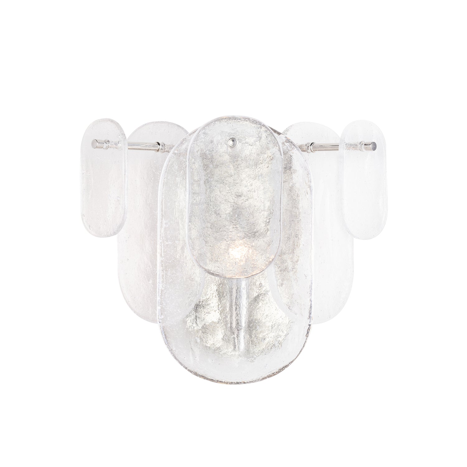 Modern and elegant, panes of striking water glass adorn the Echo Sconce to create a dynamic lighting piece. Each glass pane diffuses light, providing a soft glow to the area around it, perfect for a hallway or powder room.