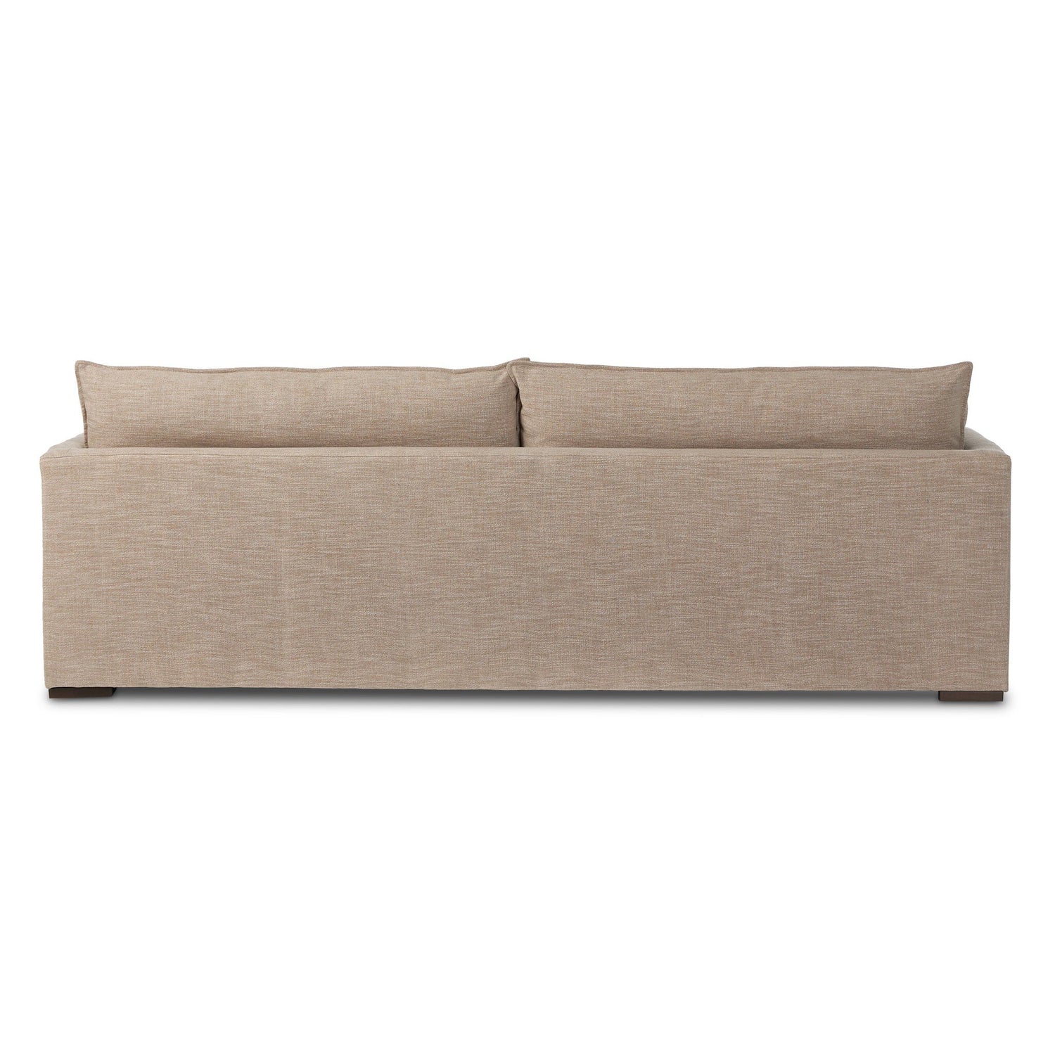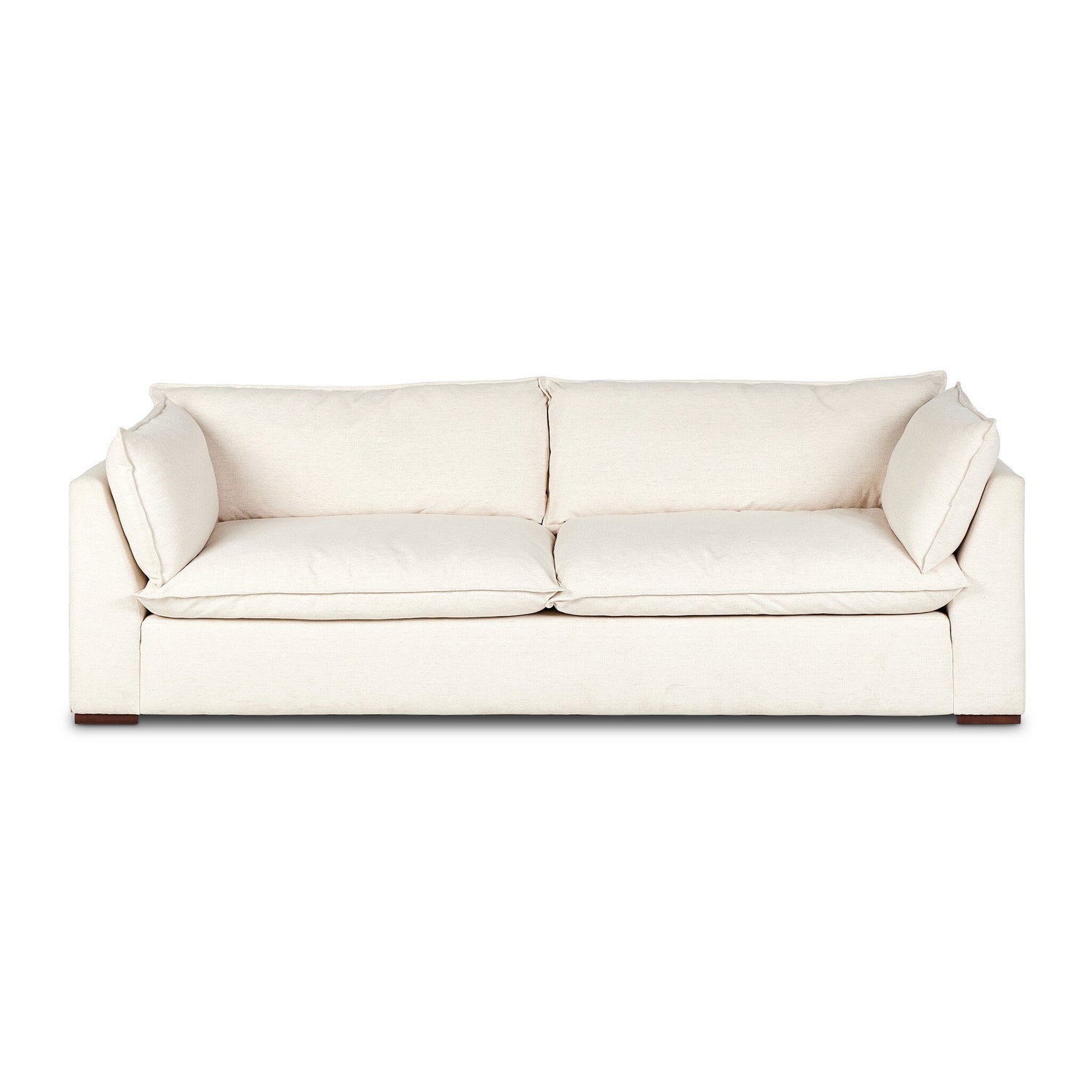 Sink-in luxury. Designed to mimic the casual comfort of a feather duvet, slightly flared arms frame feather-blend cushioning for a relaxed look and sink-in feel. Fluff cushions regularly to maintain appearance. Performance fabrics are specially created to withstand spills, stains, high traffic and wear, ensuring long-term comfort and unmatched durability.