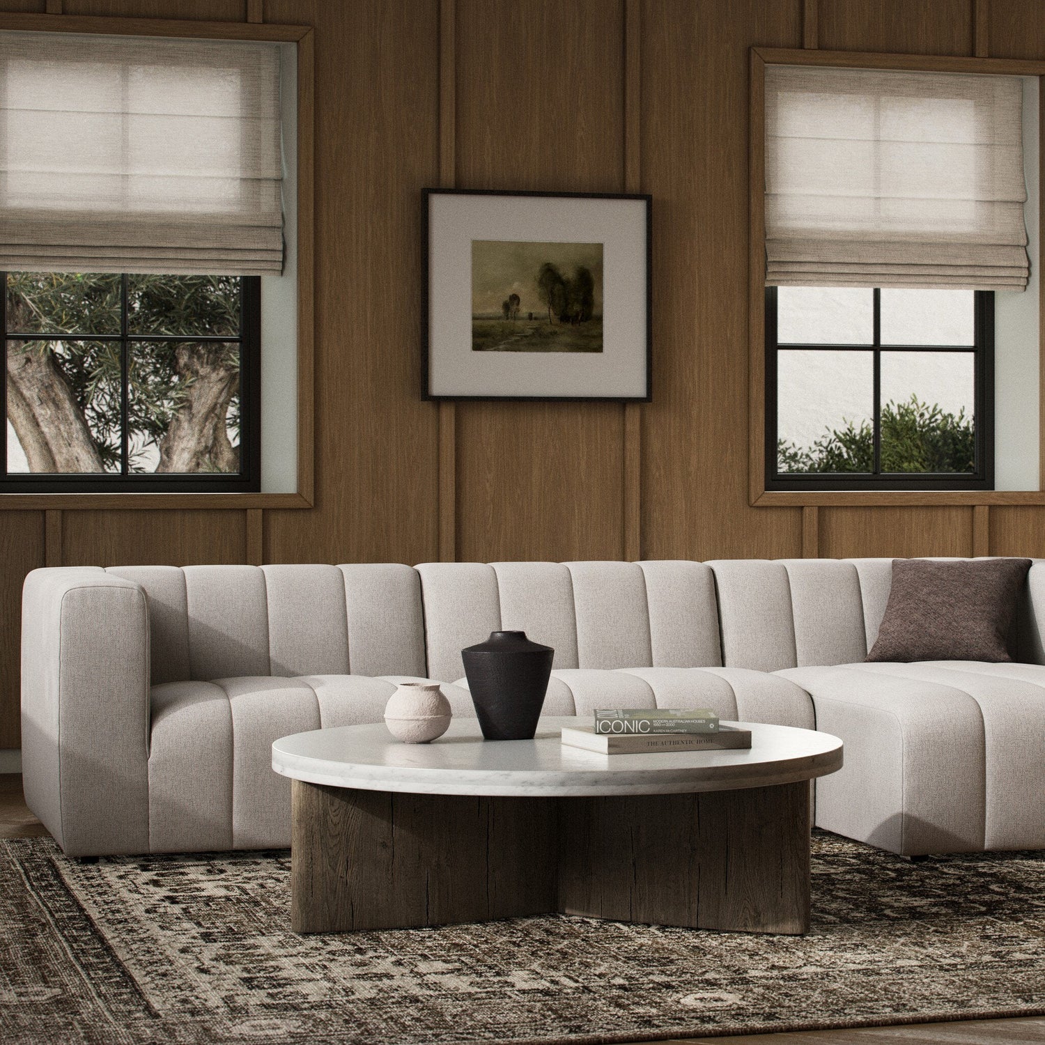 A bold, refined sectional designed to anchor expansive lounge settings with comfort and poise.