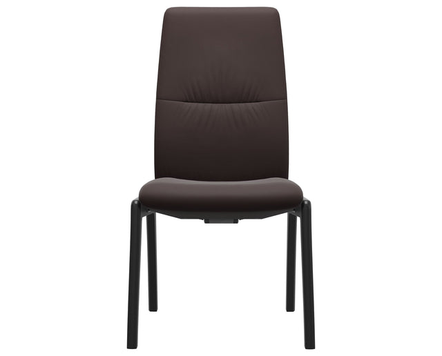 The Stressless Mint High Back D100 Dining Chair is part of the Stressless Mint collection. The Mint dining chair has a supportive 22" high back and patented Stressless technologies for breathtaking relaxation, plus customizable contemporary style. This dining chair is available in your choice of a range of leather and wood finishes to make it truly your own.