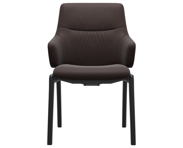 The Stressless Mint Low Back D100 Dining Chair w/Arms is part of the Stressless Mint collection. The Mint dining chair promises fabulous relaxation with minimalist style, a sleek 16.75" low back with arms and patented Stressless technologies. This dining chair is available in your choice of a range of leather and wood finishes to make it truly your own.