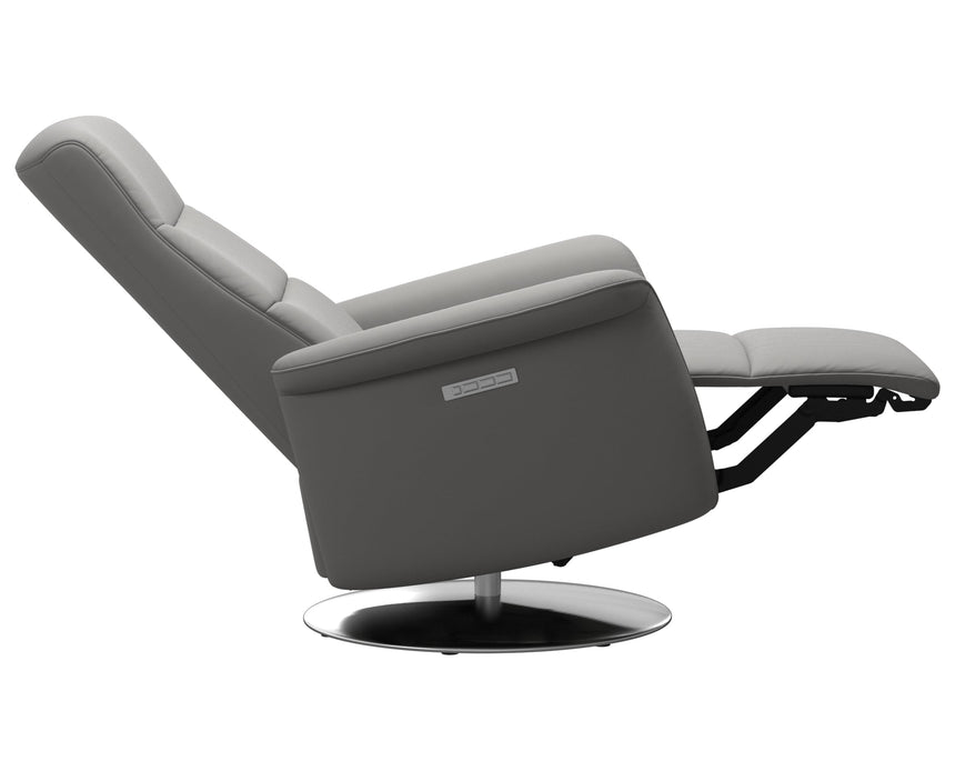 The Stressless Mike Recliner boasts a slimline design with attractive rounded contours and details that enhance the soft lines of the clean and contemporary cushion style. This modern recliner welcomes you with soft and calming rocking motions as you sit down. The headrest, back and footrest can be adjusted individually to your preference. The control panel also has a master button, allowing you to automatically recline into a comfortable resting position. Experience unsurpassed style and comfort uniquely tailored to you with the Stressless Mike Recliner.