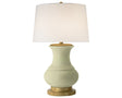 The Deauville Table Lamp adds a sophisticated look to any room. This design is available in a crackled celadon or soft neutral finish, focusing attention on the shapely silhouette of this ceramic and porcelain piece. The Deauville lamp is topped with a classic paper drum shade and golden finial. Equipped with a dimmer to offer a warm, inviting glow. The Deauville Table Lamp is part of the Chapman & Myers collection.