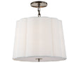 Its scalloped fabric shade diffuses light into a warm, ambient glow, while the suspended structure adds a subtle architectural statement. With multiple finish options available, the pendant adapts seamlessly to both classic and contemporary aesthetics.