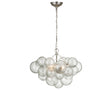 The Talia Small Chandelier by Visual Comfort is a whimsical take on traditional lighting, offering a dynamic blend of artisan craftsmanship and sculptural elegance. Designed by Julie Neill, this fixture showcases a rounded cluster of hand-blown, swirled glass orbs that catch and reflect light in every direction.