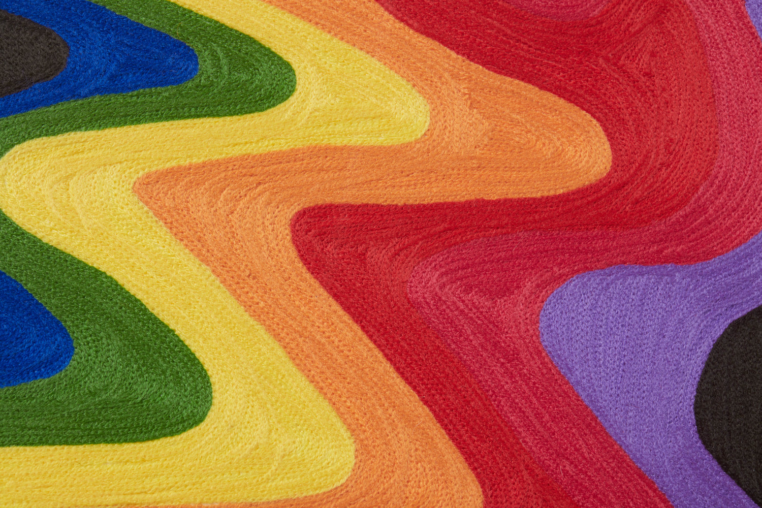 Our bold and graphic Pride Pop Art celebrates the strength, vitality and spirit found across our diverse country as chain stitched textile art. Join Loloi Rugs in support of equality, respect and the inclusion of all people.
