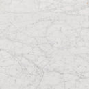 A white Carrara marble slab, rich with veining and movement. Supported by a wooden plinth, marble takes the spotlight in a design that's simple and sophisticated at once.