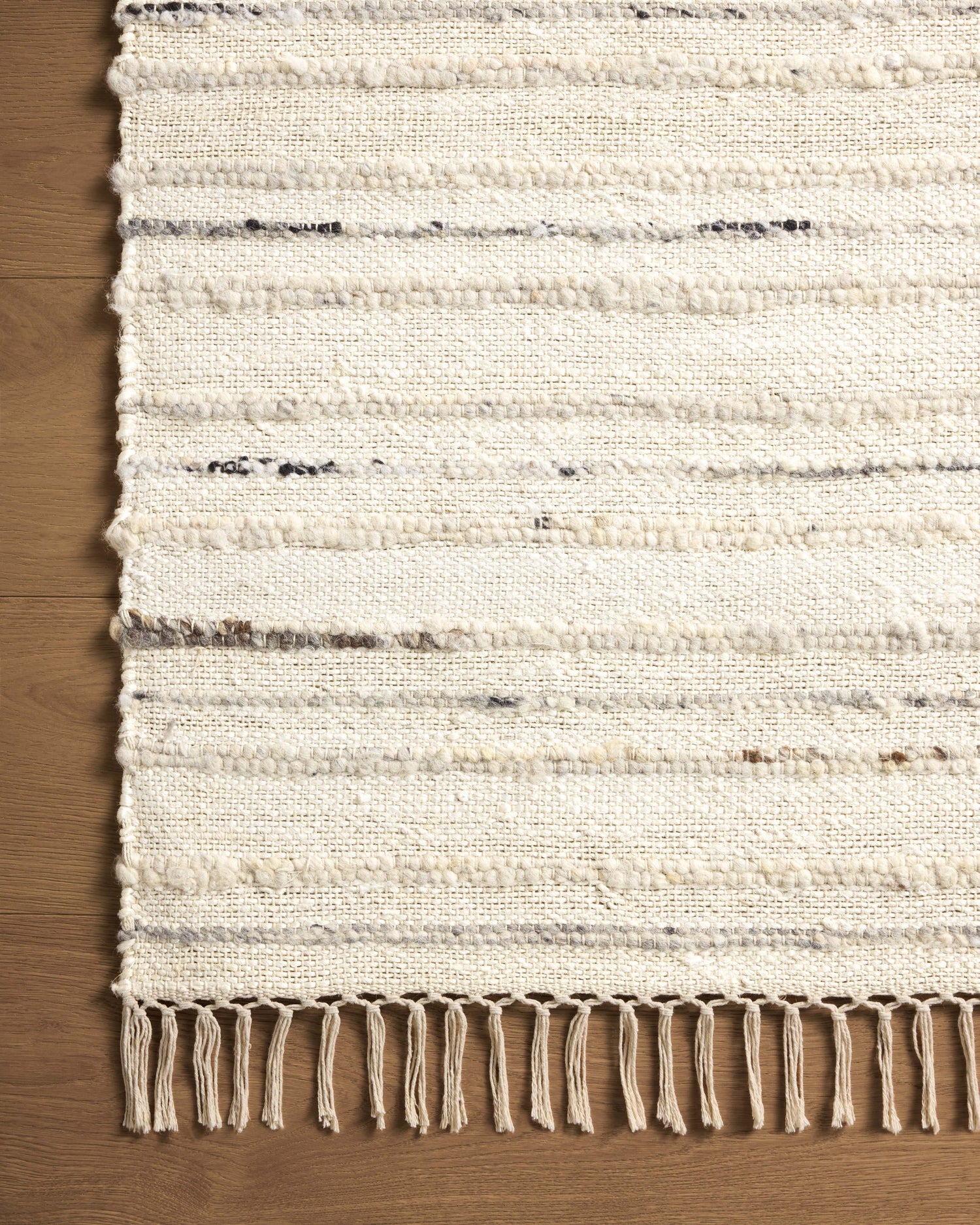 The Nico Collection by Joanna Gaines x Loloi is a dynamic jute rug with raised, alternating lines of wool and cotton, finished with playful fringe. Neutral, undyed tones give the rug an organic modern feel that can ground living rooms, bedrooms, dining rooms, and more. Hand-loomed of jute, cotton, and wool in India and GoodWeave-certified, ensuring our commitment to ethical production and the support of weavers’ communities.