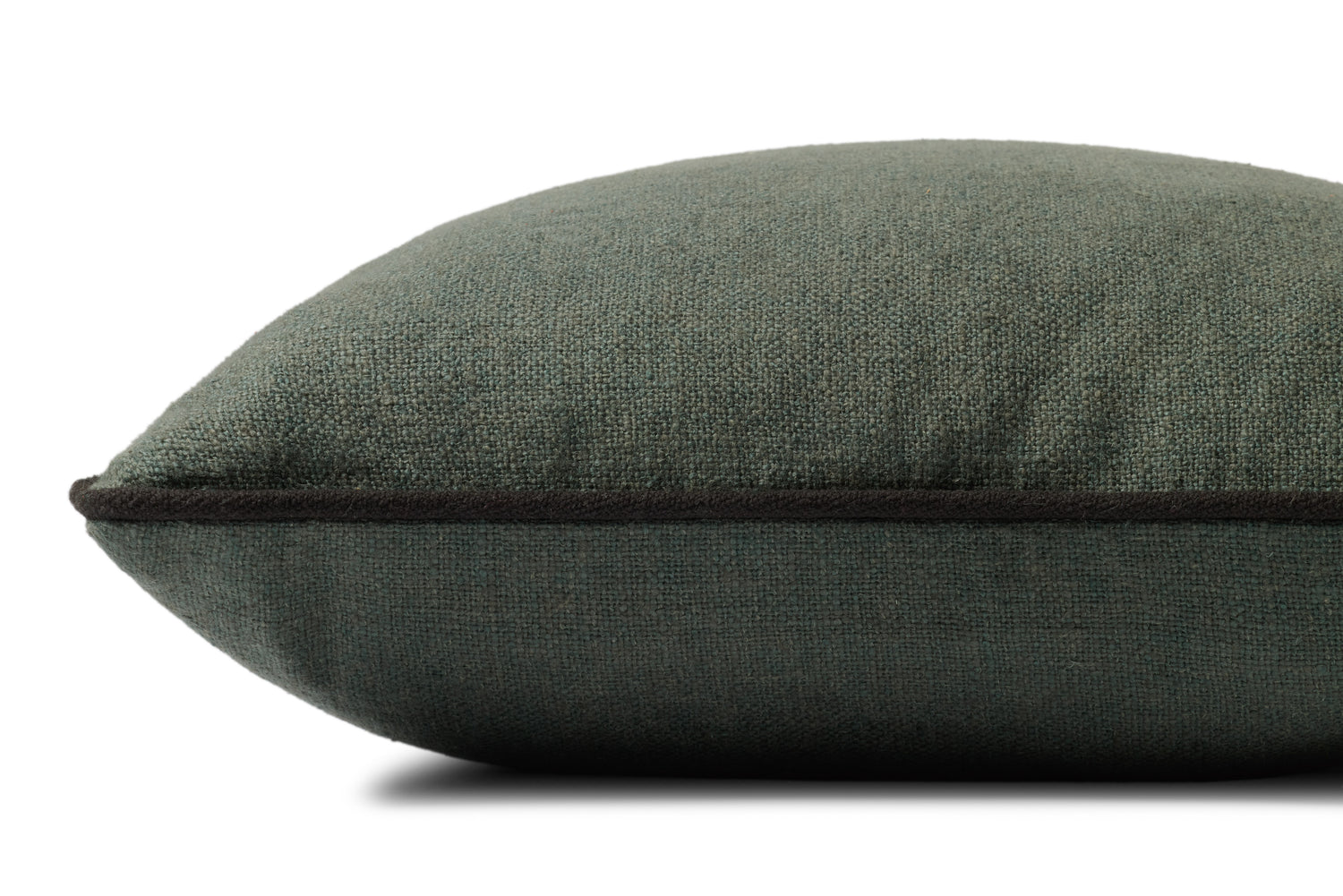 Hudson is a solid-toned throw pillow with contrast black piping designed by Jeremiah Brent x Loloi. The 20” x 20” decorative pillow is made in India of cotton, linen, and viscose, a sophisticated accent for modern home decor.