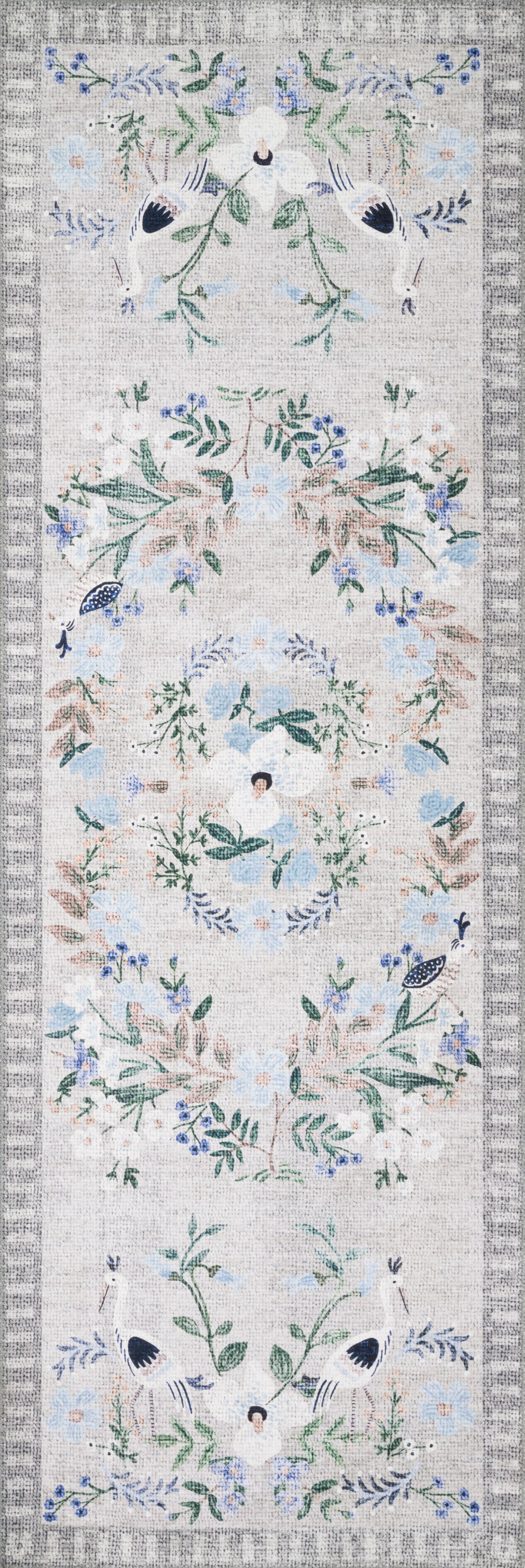 Bold and bright, the Palais Collection for Rifle Paper Co. x Loloi grounds any space with whimsical motifs and playful colors inspired by Anna Bond’s illustrative artwork. Each piece is printed on a soft polyester base, ensuring comfort underfoot, colorfastness, and stain-resistance.
