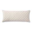 The ivory Ava throw pillow has a tonal geometric pattern that captures the light, adding a touch of glamour and elegance to any room; designed by Magnolia Home by Joanna Gaines x Loloi