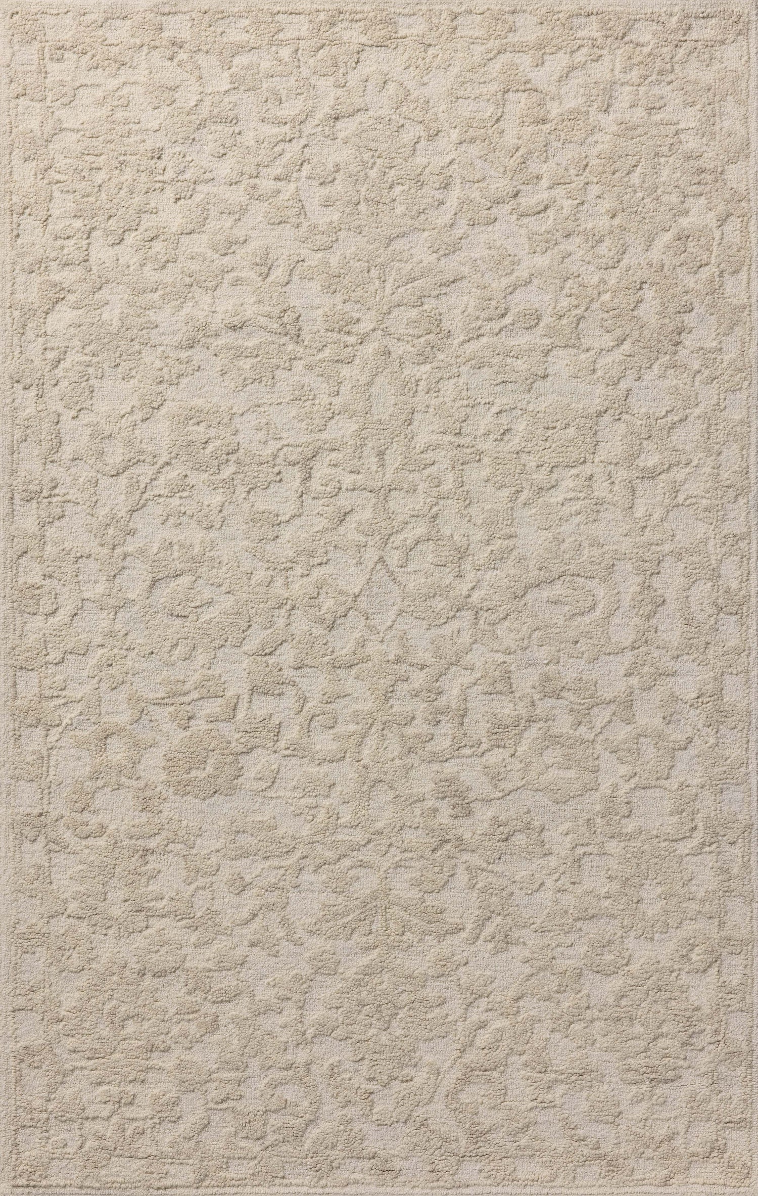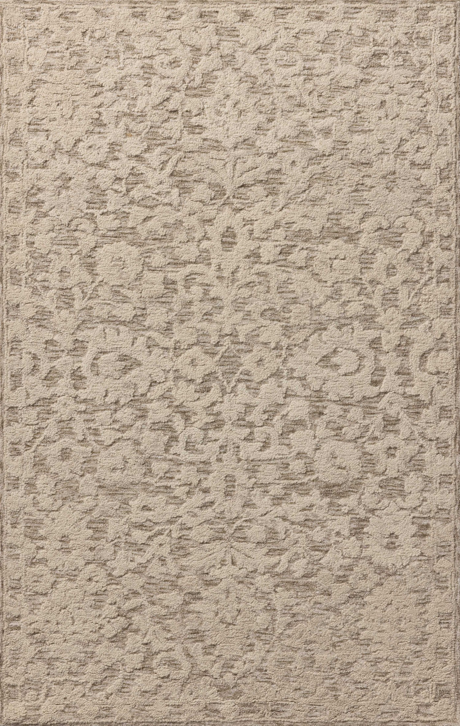 The Prudence Collection is a hand-tufted area rug made of soft, space-dyed wool and cotton, which lends a subtle gradation of color throughout the floral design. The rug’s background is low-looped, while the pattern is made with a chunky, higher loop to create even more depth in this sophisticated design. This collection is hand-tufted of wool and cotton in India and GoodWeave-certified, ensuring our commitment to ethical production and the support of weavers’ communities.