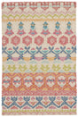 Loom knotted cotton flatweave rug features unique and pretty Fairisle motifs woven in a Birdseye technique, which beautifully mutes and washes down the lively palette of Orange, Leaf, Denim, Fuchsia, Red and Soft Pink. Enhanced durability is an added bonus delivered by its special woven structure.