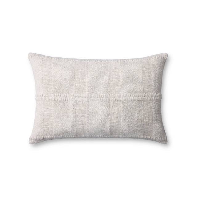 This handwoven ivory throw pillow is the perfect textured neutral, featuring a textured white-on-white grid pattern. The pillow cover is made of cotton and other fibers and measures 16” x 26”, an elongated size to style in living rooms and bedrooms.