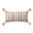 This earthy brown, rust, and beige striped throw pillow with corner tassels adds texture and neutral pattern to a wide range of home decor styles, from farmhouse to coastal. The 12” x 27” lumbar pillow is machine-woven in India of cotton, polyester and other fibers.