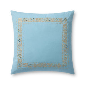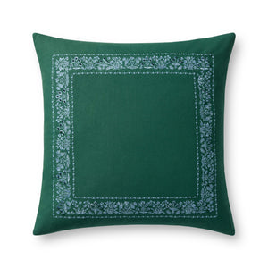 This throw pillow from Rifle Paper Co. x Loloi features an embroidered botanical frame design based on original artwork by Anna Bond. The pillow is machine-embroidered in India of 100% cotton.