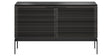 The Corridor's architecturally inspired louvered doors keep contents concealed and ventilated, and are remote control friendly, even when closed. A beautiful storage cabinet in its own right, this cabinet can also be the centre of an entertainment system, perfect for streaming devices, gaming consoles and up to a 60" television. Whether placed flat against the wall or tucked into a corner, the Corridor's slender design makes maximum use of a minimal footprint. A fixed centre shelf provides ideal four-compartment storage for an assortment of personal items, or can easily accommodate a soundbar across the full length of the cabinet.