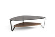 The Dino Coffee Table features a timeless, classic design. The soft, triangular shape of this table makes the Dino a welcome addition to any space, and perfect for use with a sectional sofa. The Dino Coffee Table's elegant triangular shape coordinates with a variety of upholstery sizes and configurations. Available in four finishes, the table's tempered glass top and beveled lower shelf are securely attached to satin nickel-plated steel legs.