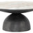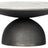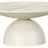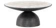 A sculptural play on shape. Hammered grey-finished aluminum base supports a grand, rounded tabletop of creamy taupe marble with beautiful natural veining.