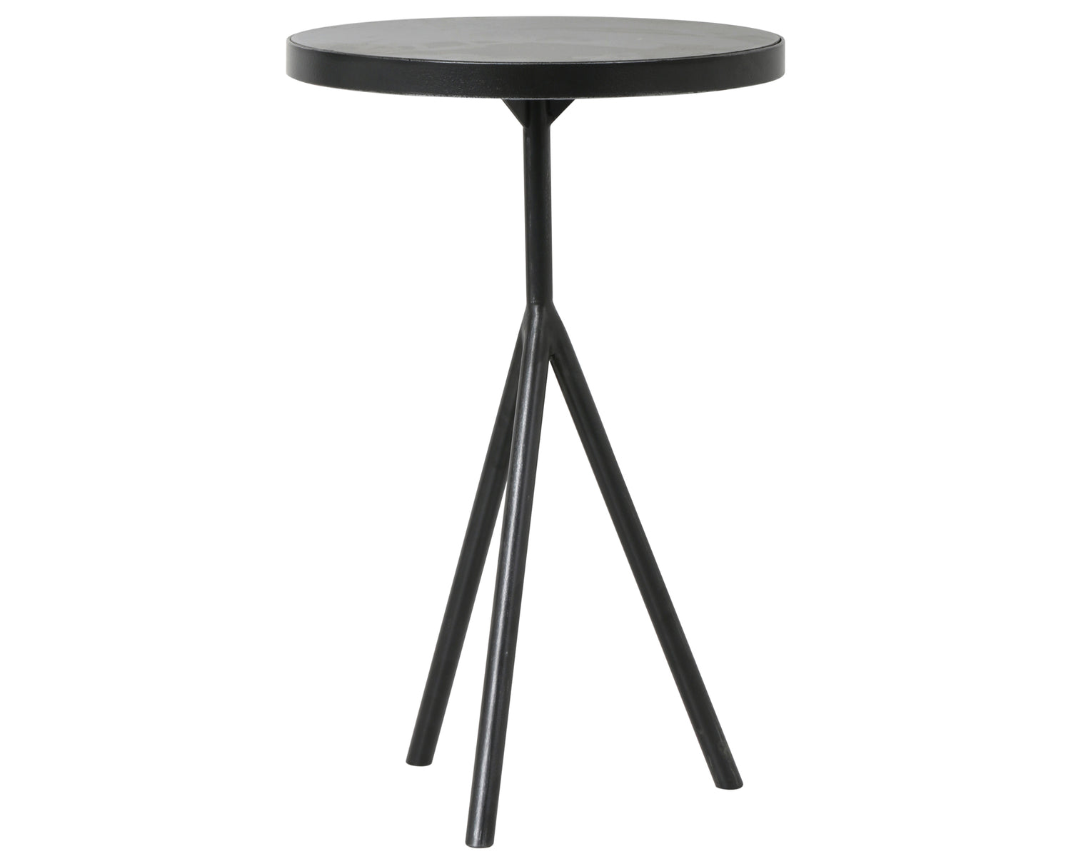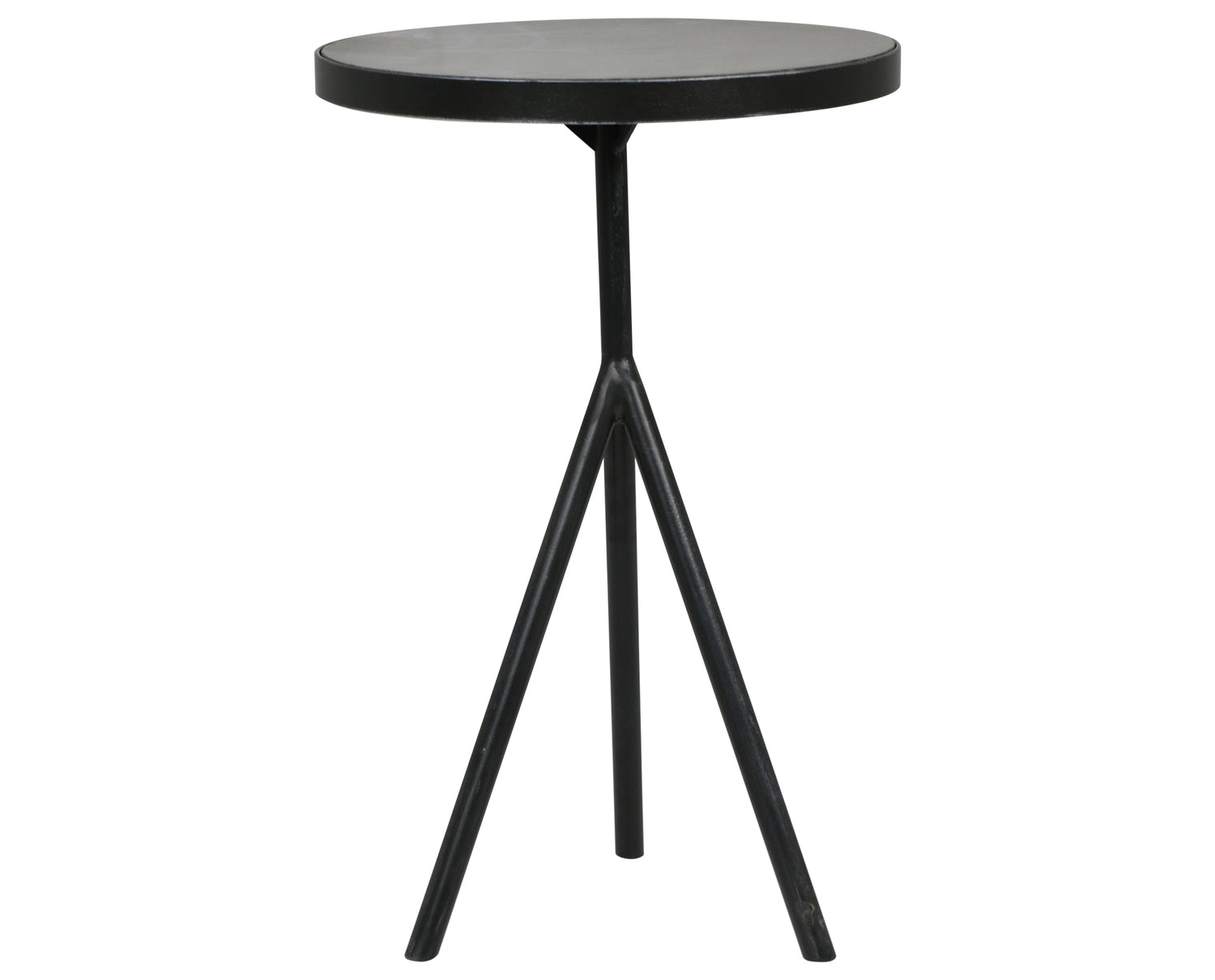 The Corin End Table features a classic tripod base of powder black-finished iron supporting a rounded bluestone top, adding elegance to slim, simple styling. White mineral lines and subtle colour, texture and pattern variations are to be expected and speak to each stone's individual nature. The Corin End Table is part of the Hughes collection.