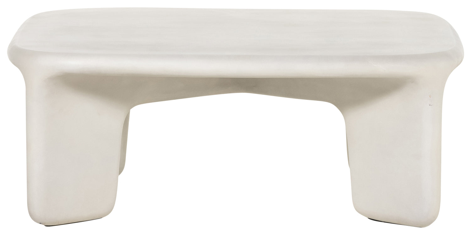 The Dante Coffee Table sports distinctive lines and adobe vibes. Made entirely from white-finished cast concrete, soft, chunky proportions lend a look of depth to this voluminous, uniquely sculpted coffee table. The Dante Coffee Table is part of the Thayer collection.