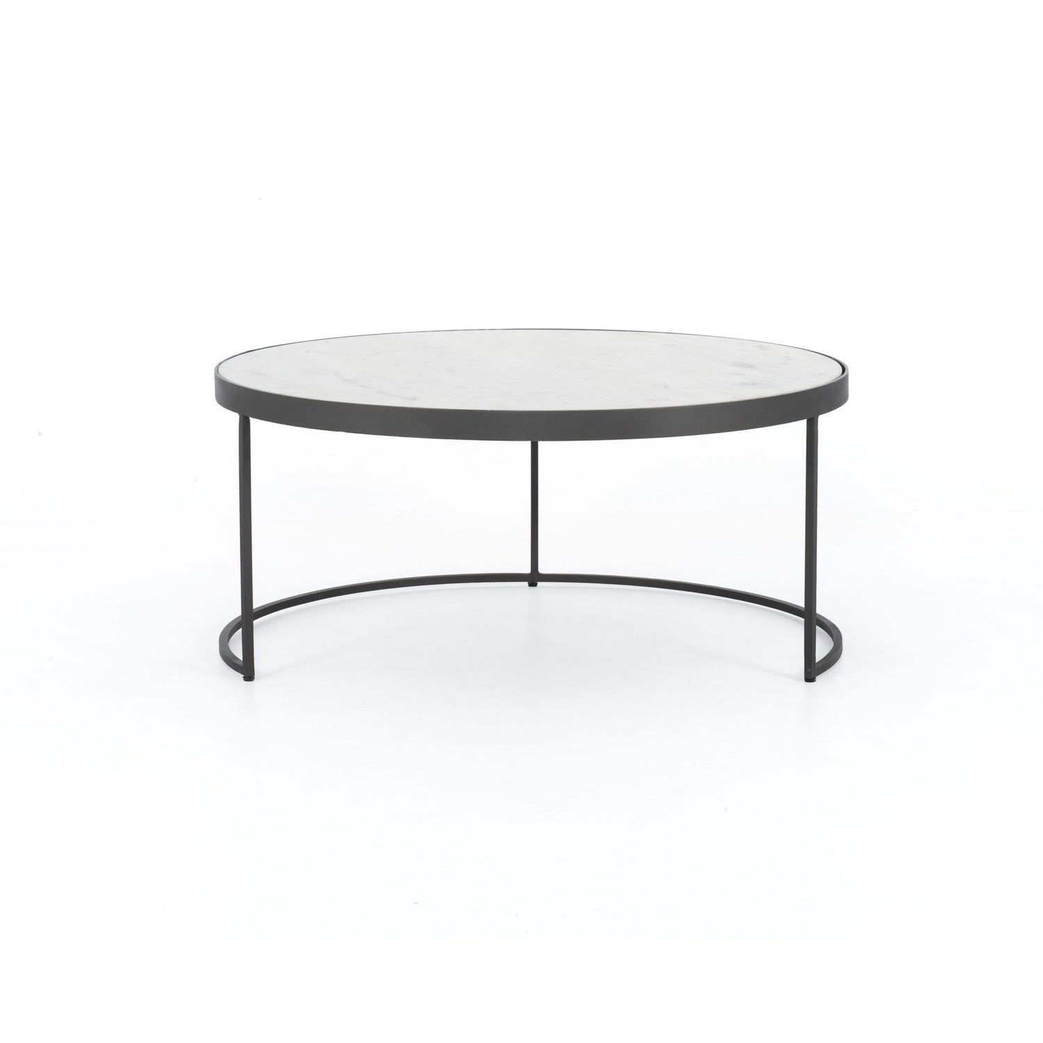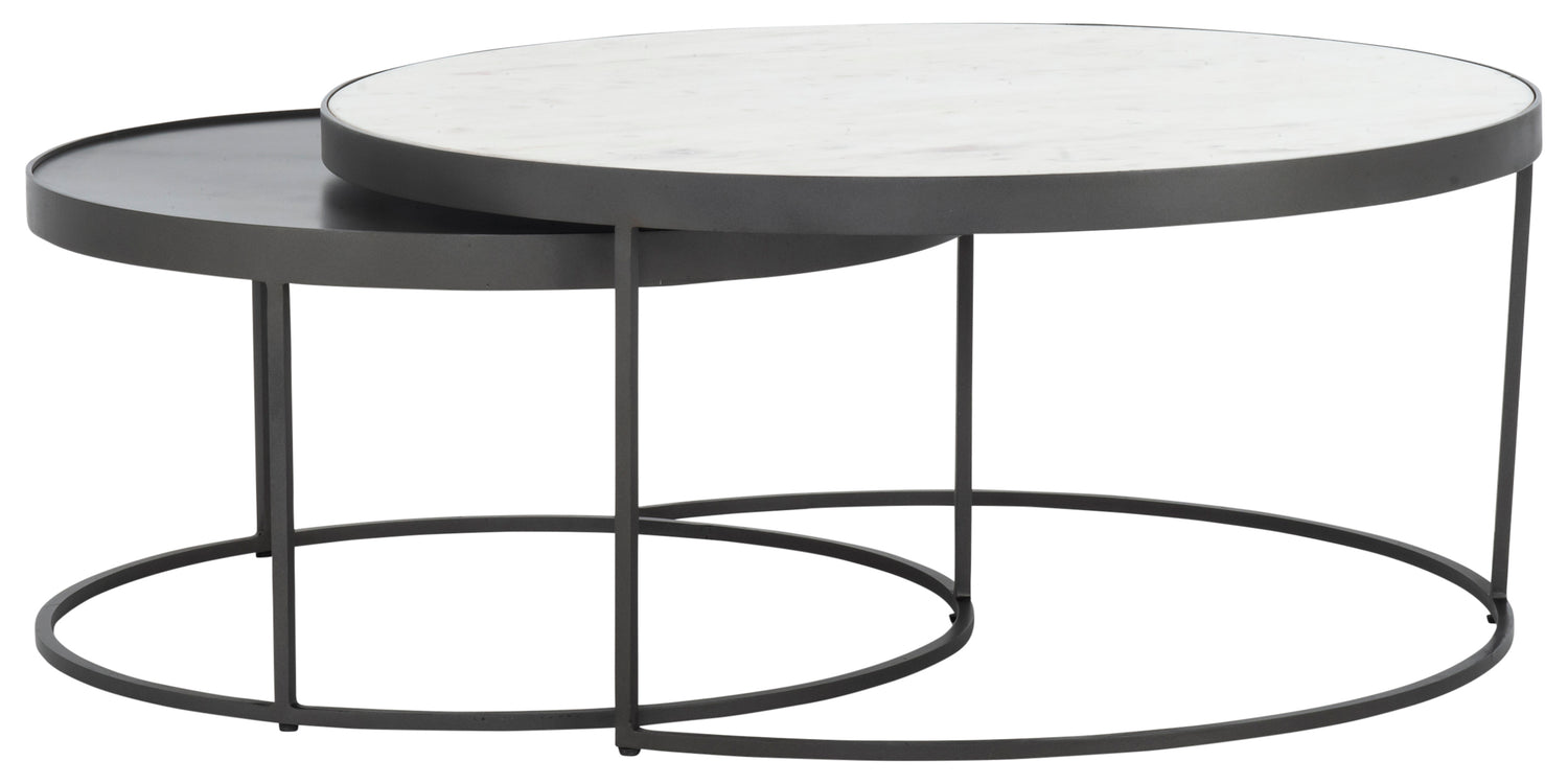 Evelyn Round Nesting Coffee Table - Polished White Marble / Gunmetal Iron is backordered and will ship as soon as it is back in stock.