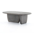 The Naya Outdoor Coffee Table is invitingly modern and curve-driven. Dark grey concrete forms a rounded rectangle top with bullnose edging, reminiscent of a shapely surfboard. Perpendicular bases bring eye-catching interest to outdoor lounging. Cover or store inside during inclement weather. The Naya Outdoor Coffee Table is part of the Everett collection.