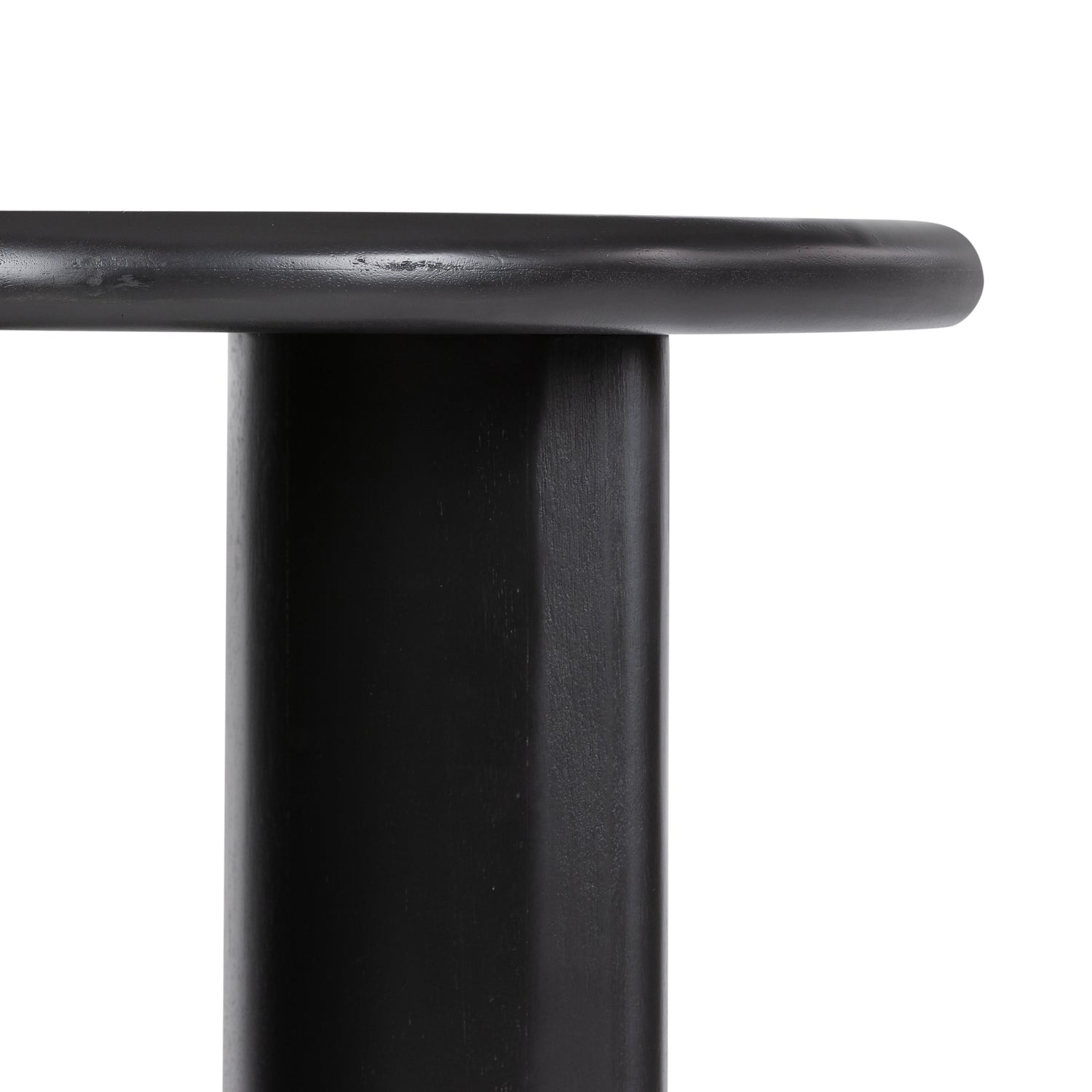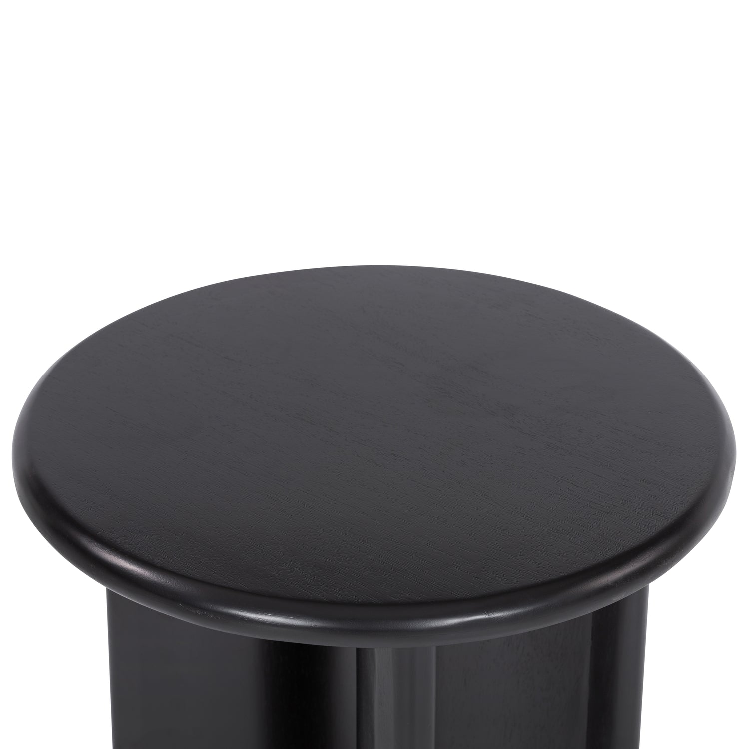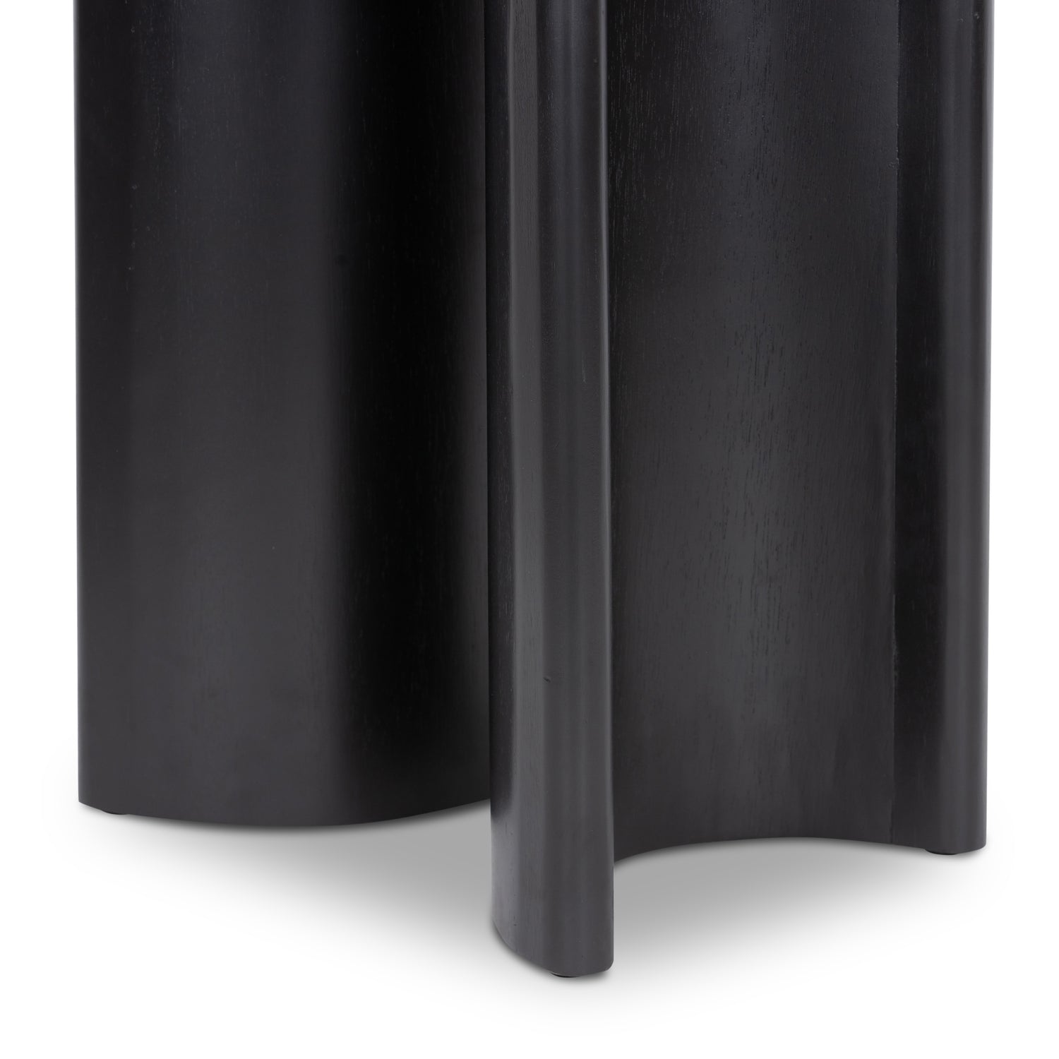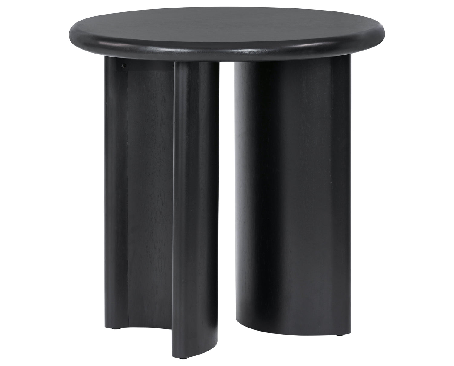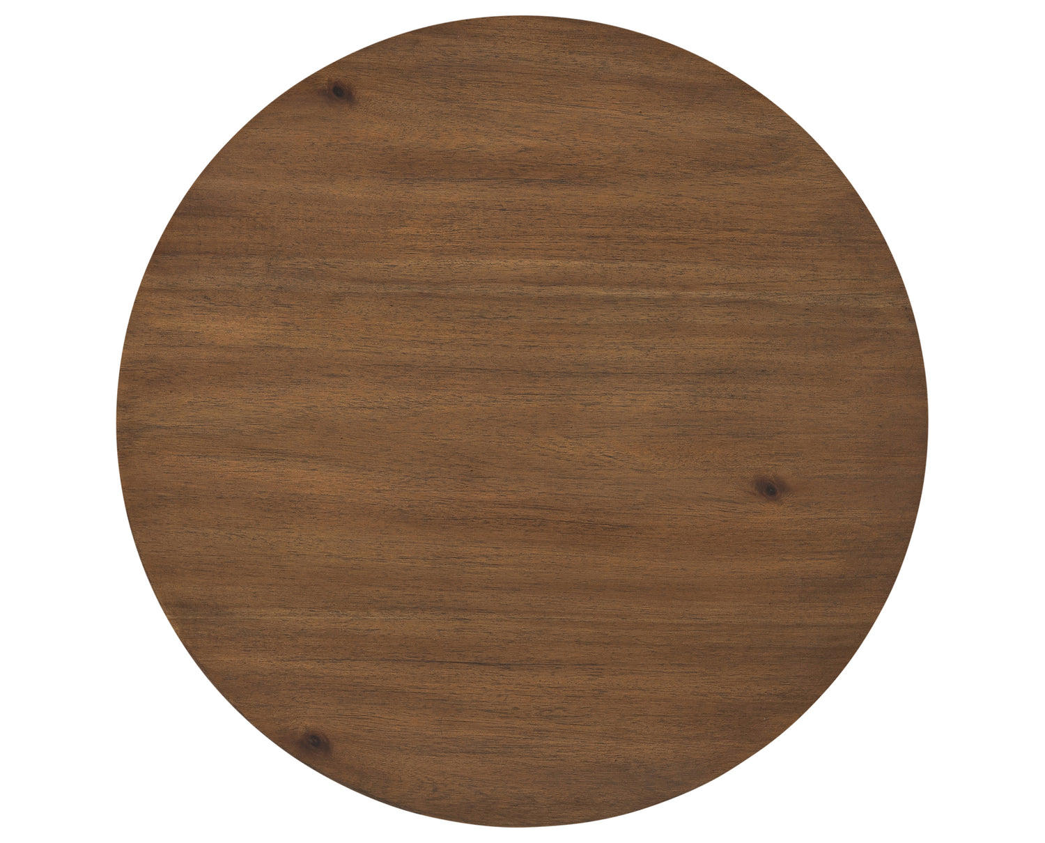 The Paden End Table presents an intriguing study in shape. Brown, black or sandy acacia forms crescent-shaped legs supporting a round tabletop, bringing organic presence to the living room. The Paden End Table is part of the Haiden collection.