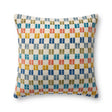 This colorful indoor/outdoor throw pillow features a geometric design with raised embroidered details, a playful accent in living rooms and on patios and porches. The 13” x 21” lumbar pillow is hand-loomed in India of soft yet durable polyester.
