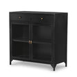 The Shadow Box Small Cabinet gives your inner collector an ideal place to play. This piece invites you to frame prized possessions in a glass enclosure with matte-black metal and brass knobs. The Shadow Box Small Cabinet is part of the Belmont collection.
