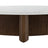 The Toli Coffee Table - mixed materials make the table. Thick-cut oak in your choice of three striking finishes forms a chunky pedestal base for a rounded tabletop of solid oak, white Italian marble, or light travertine, with beautifully subtle natural veining. The Toli Coffee Table is part of the Bina collection.