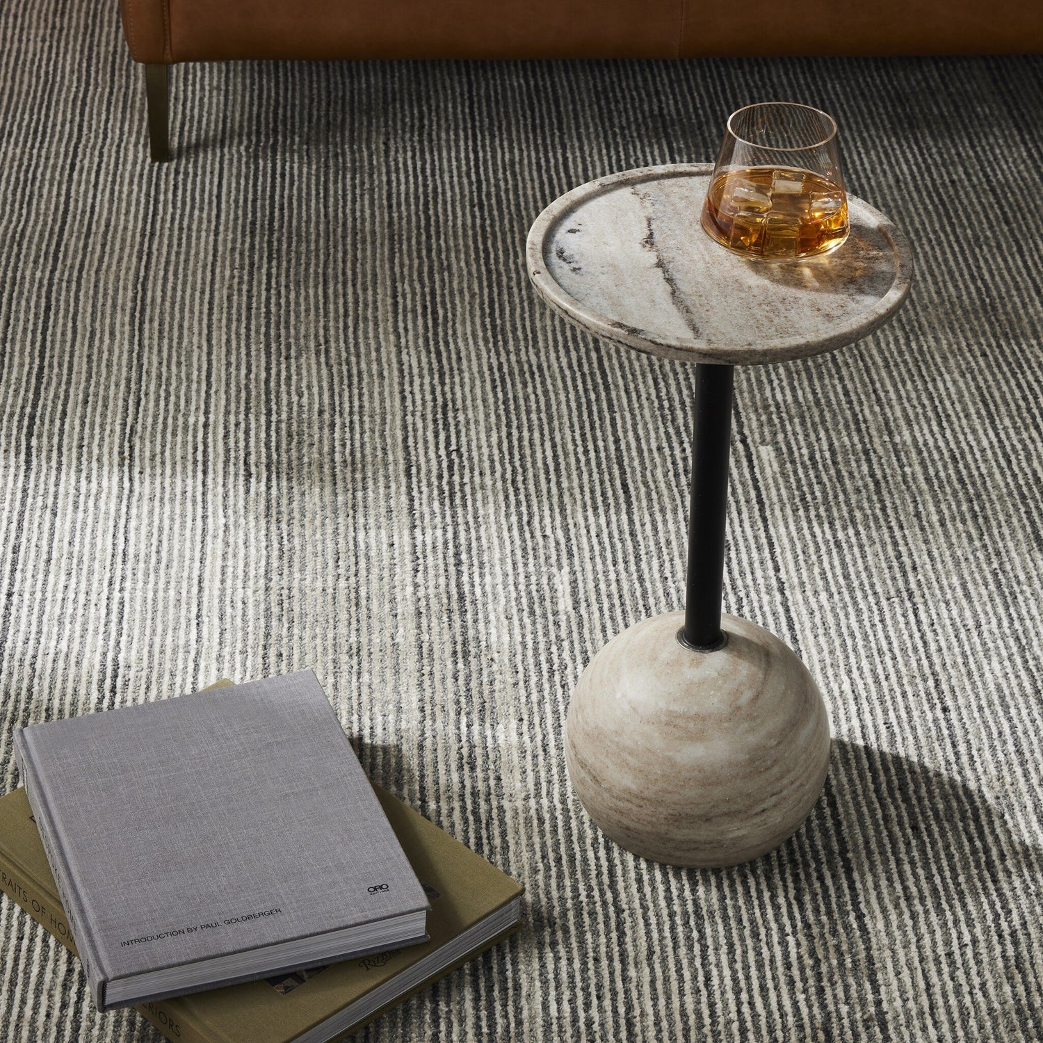 The Viola Accent Table introduces striking materiality with a sculptural sensibility. A rounded marble base—available in Antique White, Polished White, Merlot, or Black—grounds the piece with natural weight and variation. A slim iron stem supports the circular marble top, detailed with tray-style edging for added function and visual interest. Whether styled solo or nested beside a reading chair, it brings a refined, artistic presence to any space.